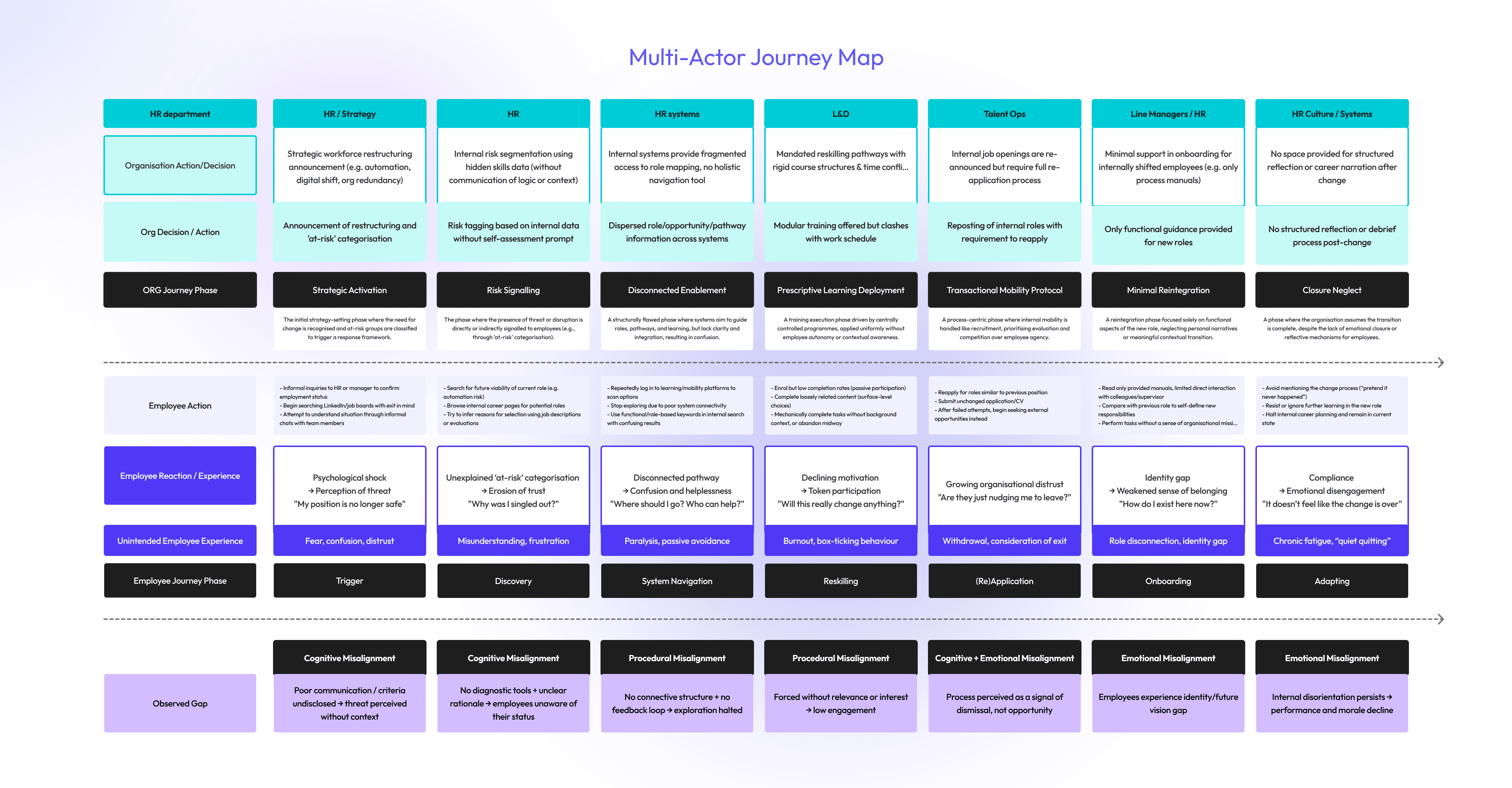 It reframes workforce transition as a continuous journey (not a one-off event), aligning employee agency with strategic workforce planning through an integrated experience architecture, behavioural scaffolding, and governance touchpoints across HR, L&D, SWP, and line management.