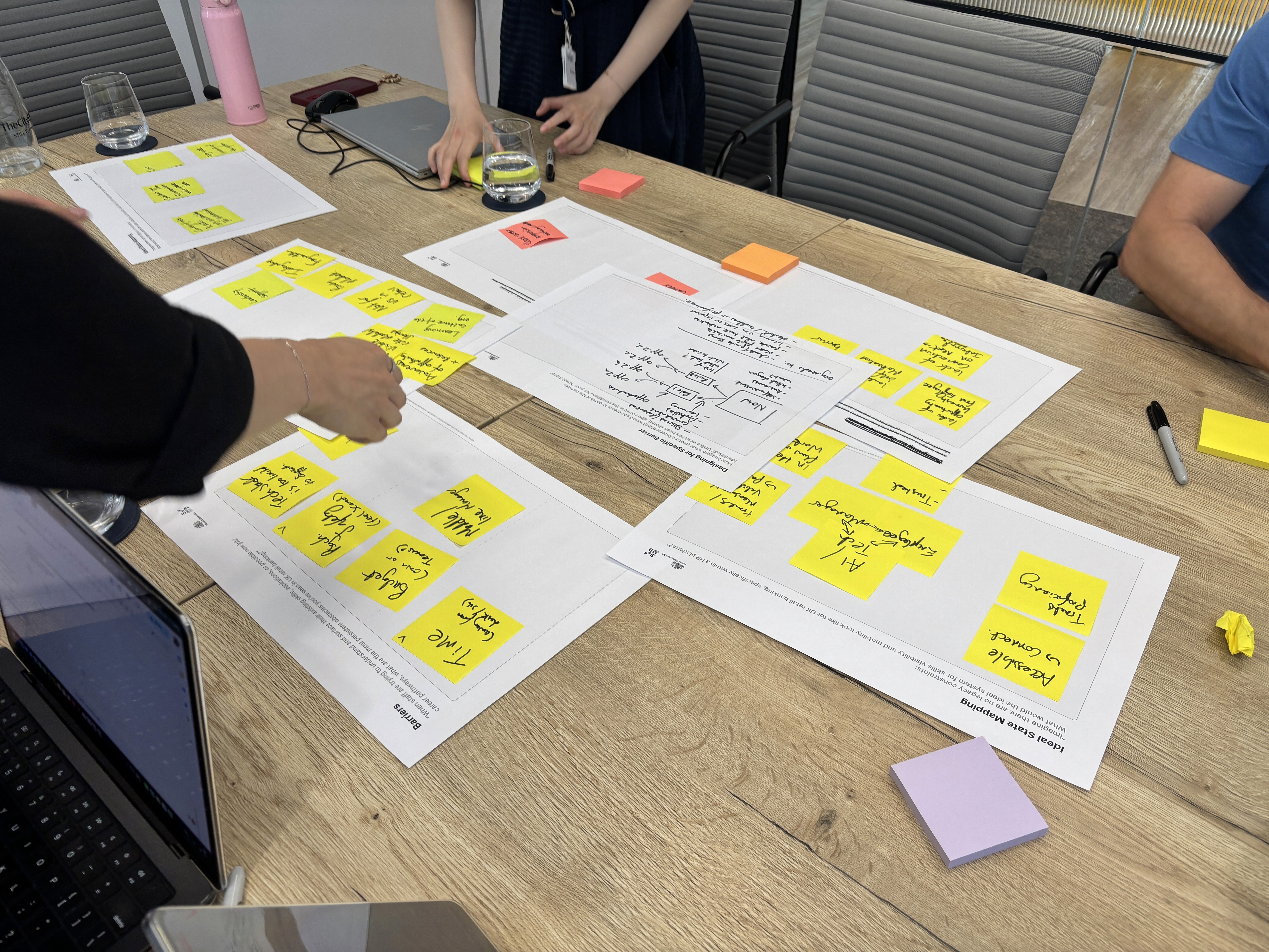 Our multi-actor journey map and system mapping revealed five interconnected feedback loops shaping how transitions succeed or fail: growth and engagement, skill visibility and matching, career clarity, leadership trust, and reskilling and mobility. At the centre of all five sit two structural barriers: cultural and top-down control, and system fragmentation.